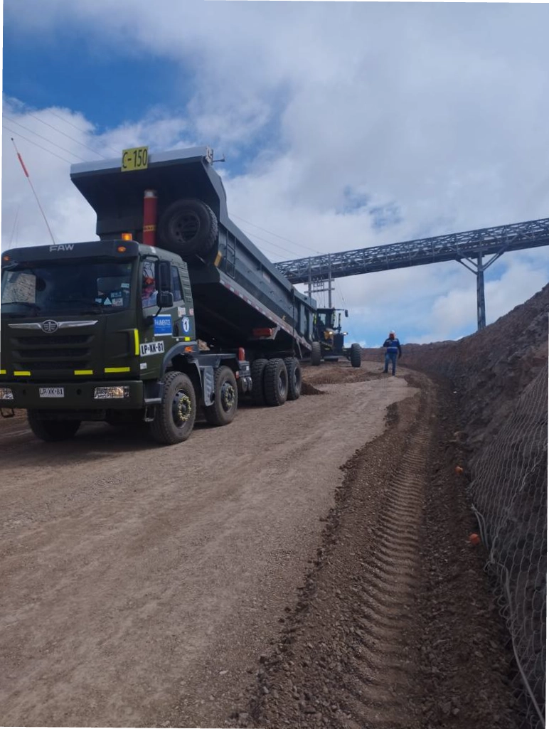 Construcción de caminos para proyecto Quebrada Blanca de la minera Teck en la región de Tarapacá.